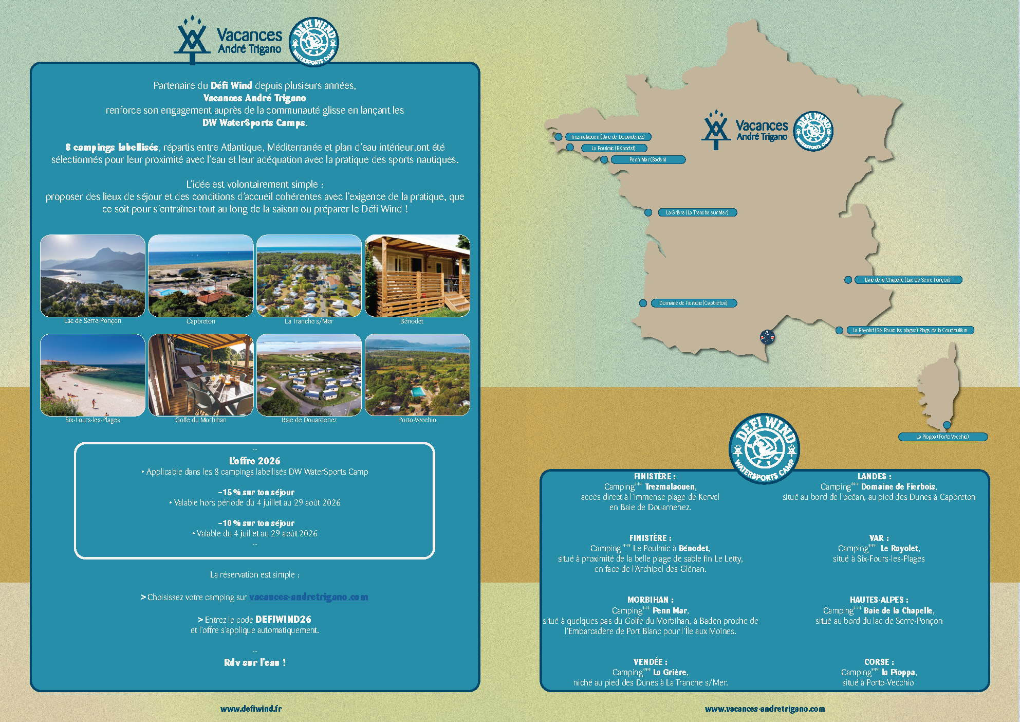 –15 % sur ton séjour avec le code DEFIWIND26 (hors période du 4 juillet au 29 août 2026)